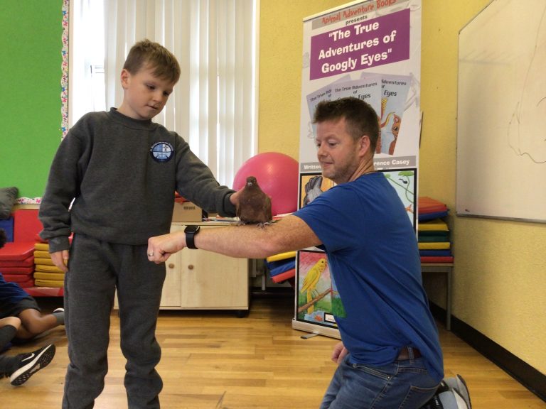 This week the Junior Classes met local author Terence Casey. He has written a new children’s book called ‘The True Adventures of Googly Eyes’ which