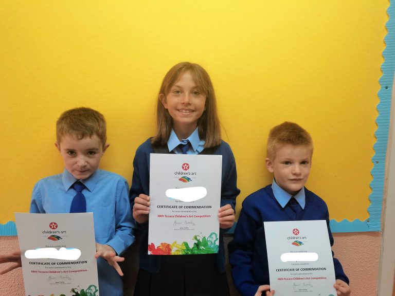 Congratulations to Sofia, Christopher and Eoghan who all received Certificates from the Texaco Art Competition. These budding artists show great talent!
