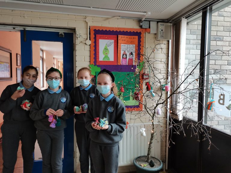 Well done to 6th class who were very busy the last few weeks. They showed their creative skills and made little Christmas hat decorations which