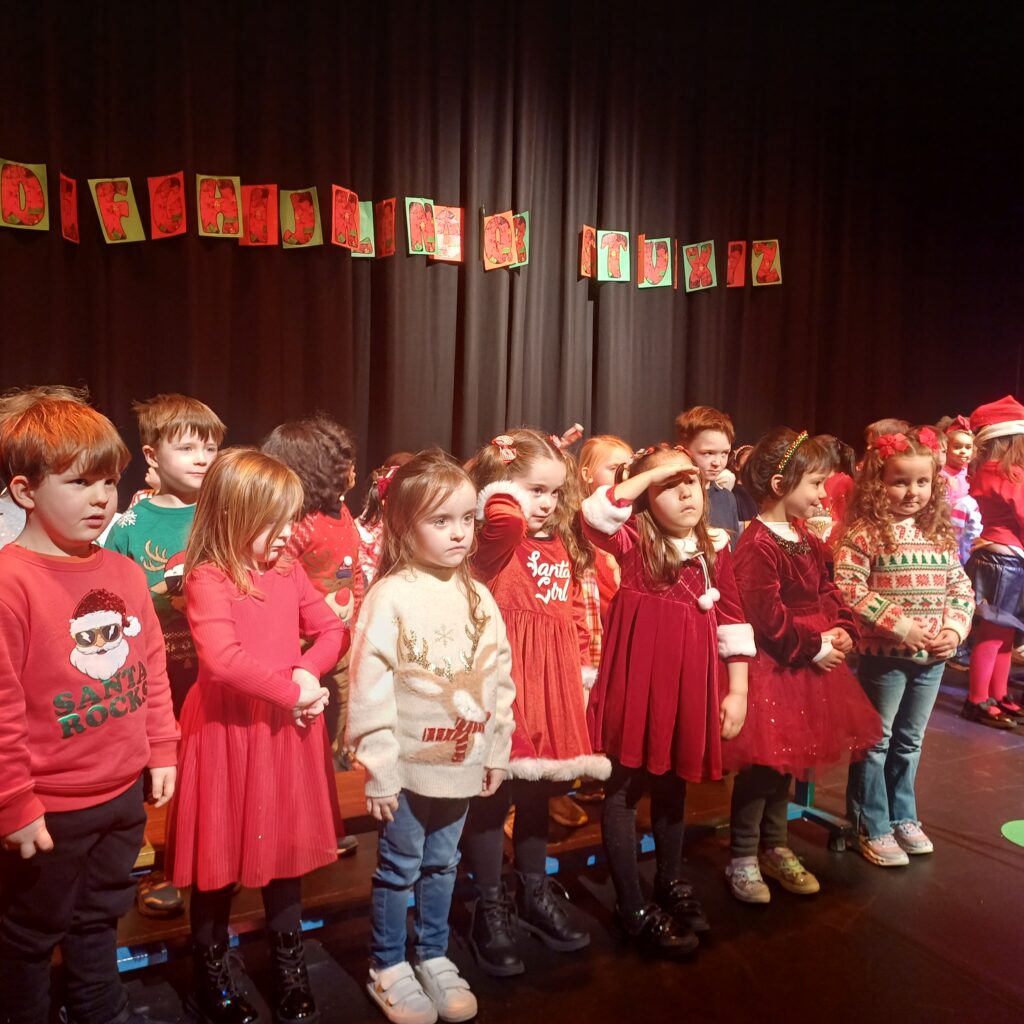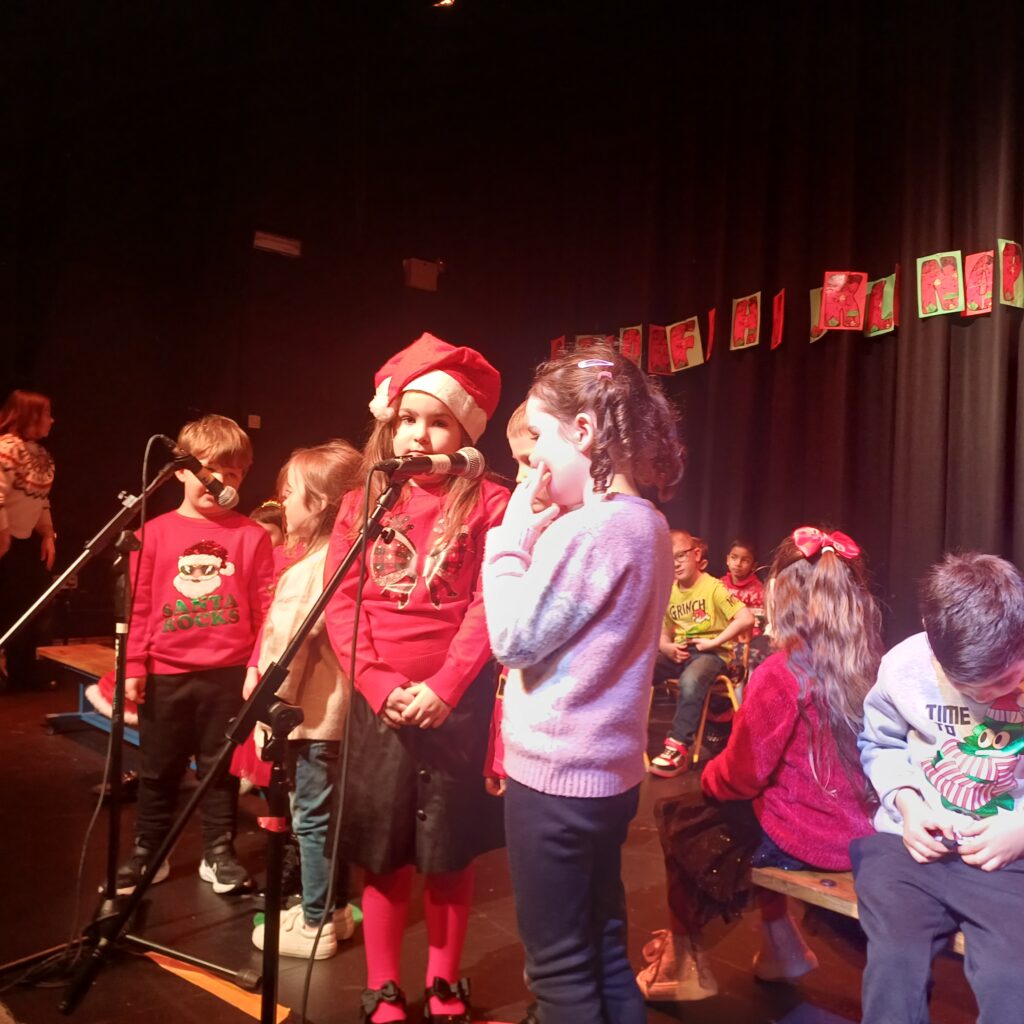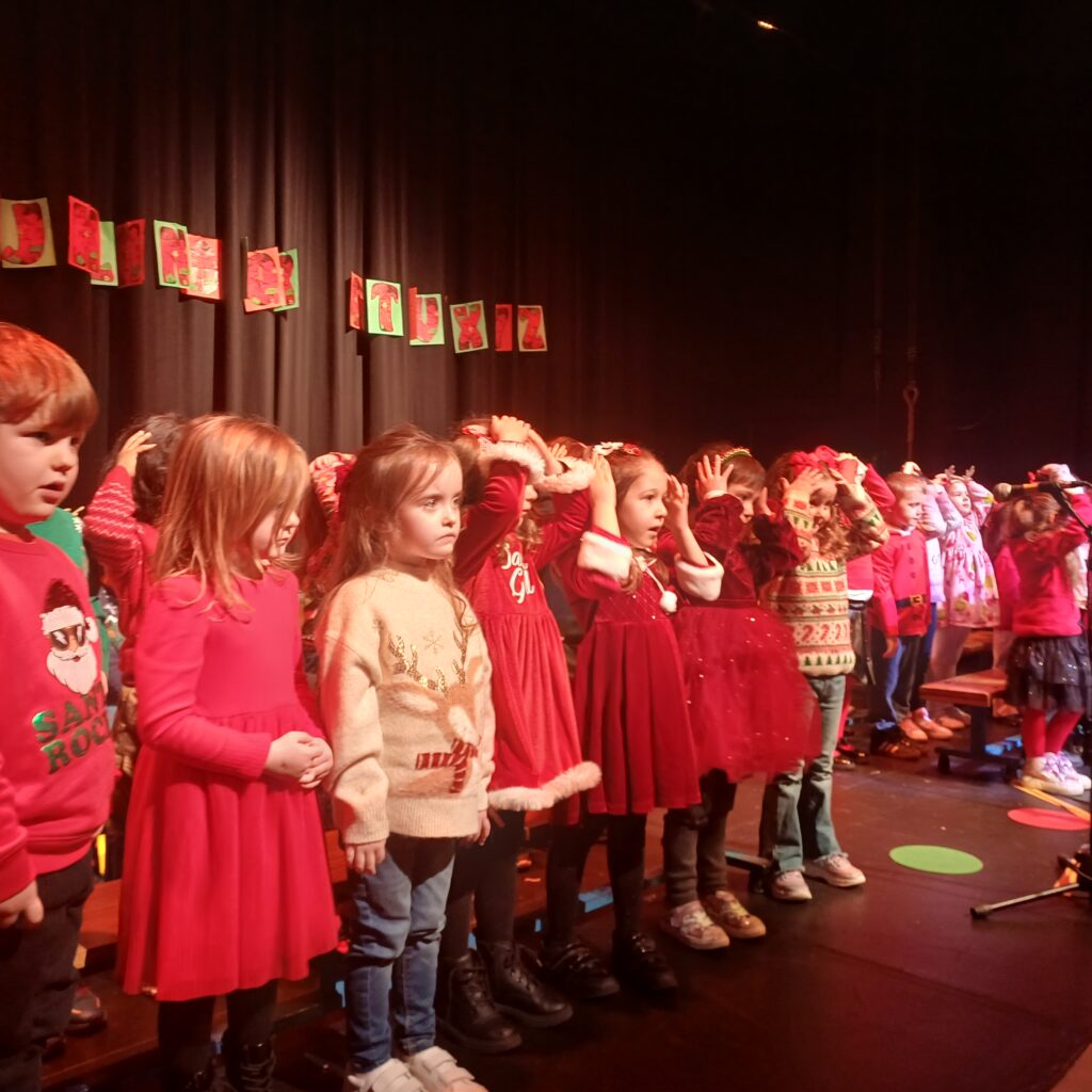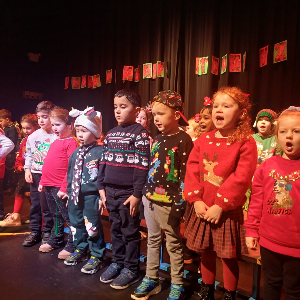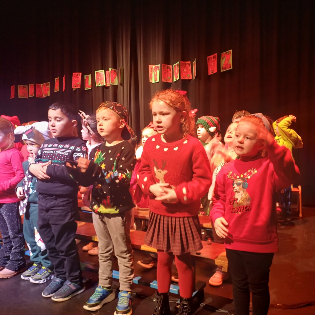 Junior and Senior Infants treated all students, staff and parents to a music extravaganza of new and old Christmas carols. Check out all the smiling