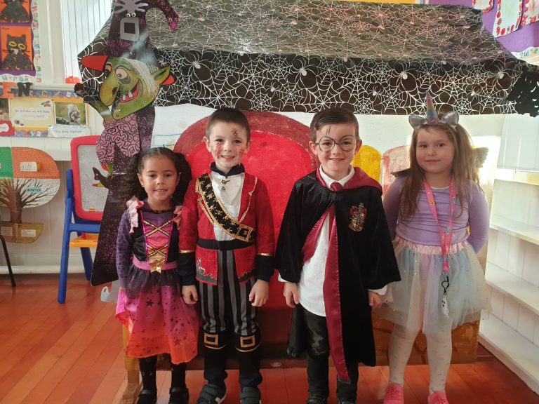 There was great excitement in St.Brigids this Friday. All the girls and boys dressed up in their Halloween costumes. We had terrifying witches, scary spiders,
